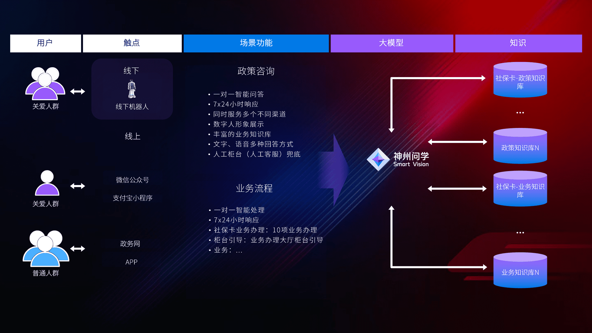 • 线上线下全覆盖:线上提供微信公众号、、、、支付宝小程序、、政务网、、、app多种渠道,,与线下机器人形成完整服务体系。。。